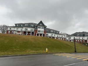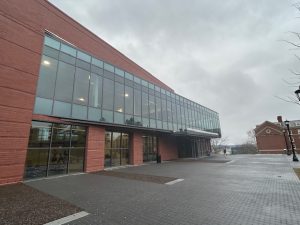 The campus is situated on a hilltop overlooking Worcester, giving it a suburban feel within a city location.