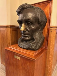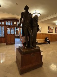 I got to see more inspiring buildings on this visit, especially Shepherd Hall and the Great Hall inside. Walking through Shepherd Hall (photo up top),our group also saw a statue of George Washington and a bust of Abraham Lincoln (photos below). CCNY students rub Lincoln’s nose and Washington’s shoe for good luck.