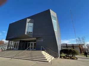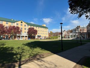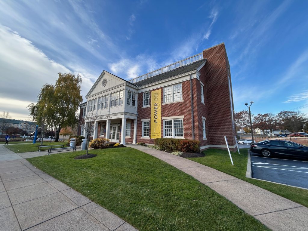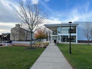 I felt that I had to make a photo off the admissions office the featured image for this campus. Unlike Yale, where you have to work to find parking to get to the admissions visitor’s center, the University of New Haven places the admissions office right near the main gate and sections off parking spaces for prospective students who come to visit. That also told me something about parking on campus for the students. The admissions office staff was extremely helpful and welcoming; their attractive quarters are also a very positive extension of the university’s marketing. I dropped a photo of the information session space below.